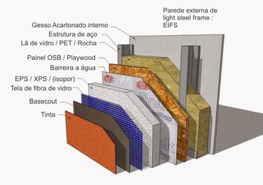 No Brasil, a opção que mais cresce de frames é com aço galvanizado (steel frame), todos os demais ítens da construção são os mesmos dos EUA: chapas, lã de vidro, massas, parafusos, etc.