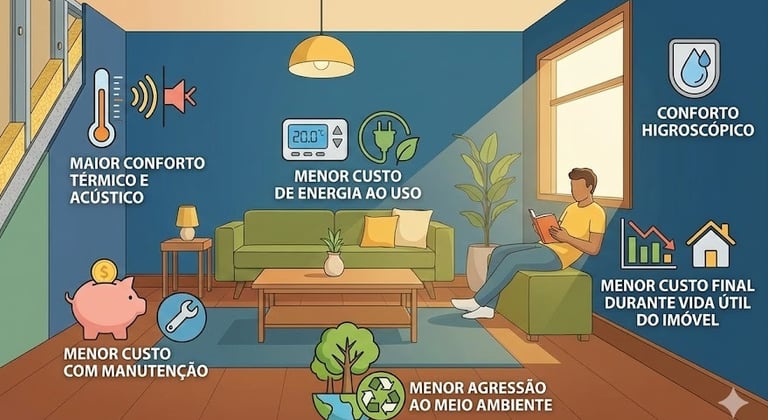 Sua parede externa contém uma composição de materiais que lhe garante superior isolamento térmico e acústico, durabilidade e estética, o melhor produto de construção civil do Brasil e do mundo moderno.