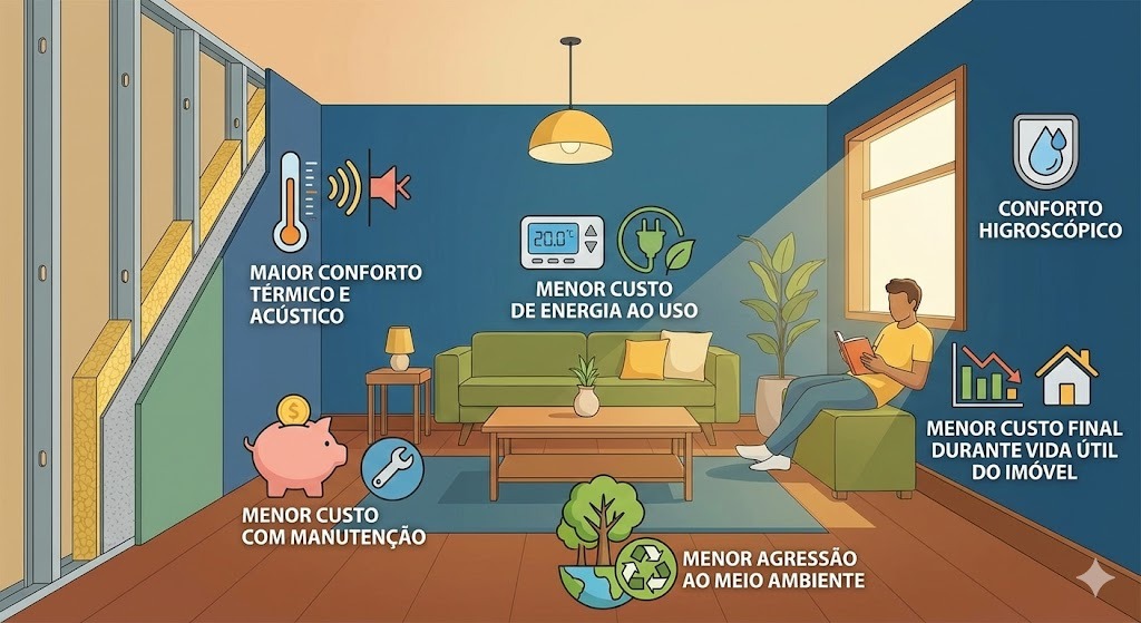 Sua parede externa contém uma composição de materiais que lhe garante superior isolamento térmico e acústico, durabilidade e estética, o melhor produto de construção civil do Brasil e do mundo moderno.